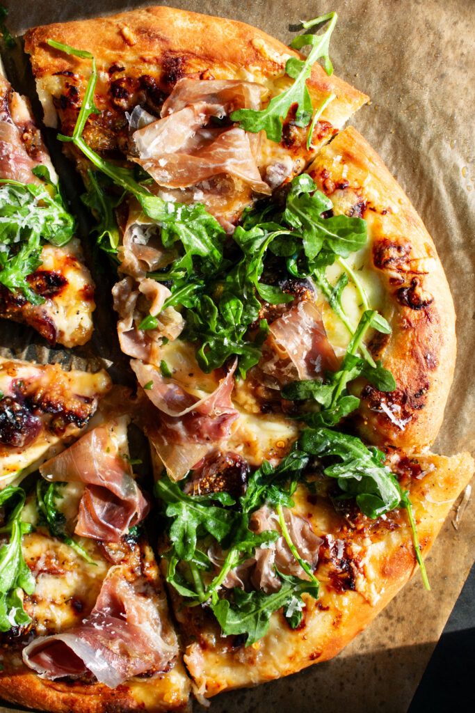 A crisp, stone-baked flatbread topped with fragrant pesto, delicate slices of Parma ham, and melted mozzarella for a perfect balance of freshness and richness. Finished with a handful of peppery rocket and a drizzle of balsamic glaze, this flatbread is a delicious fusion of bold Italian flavors.